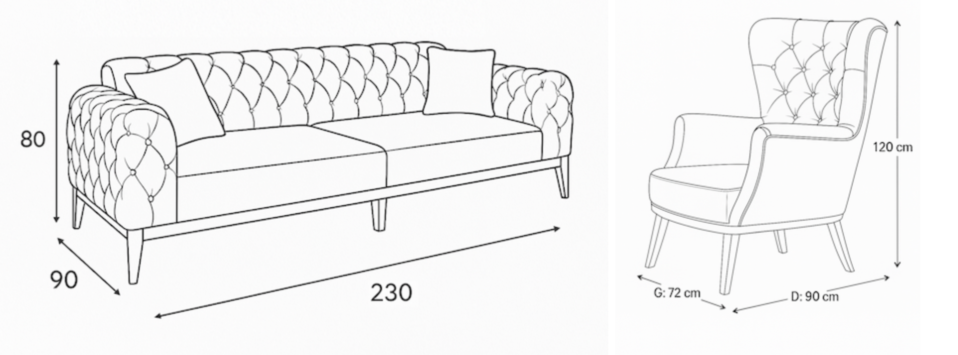 Üçlü - G:230cm D:90cm Y:80cm