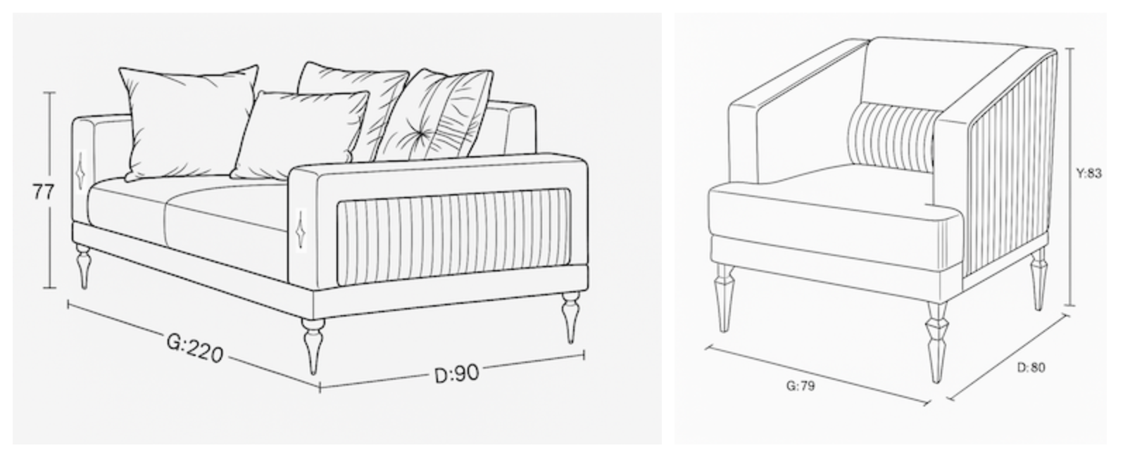 Üçlü - G:220cm D:90cm Y:77cm