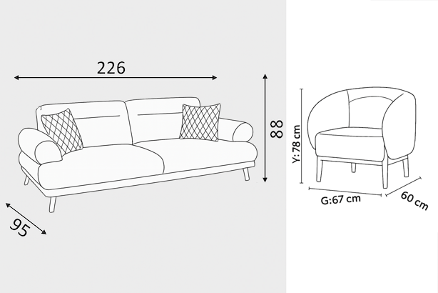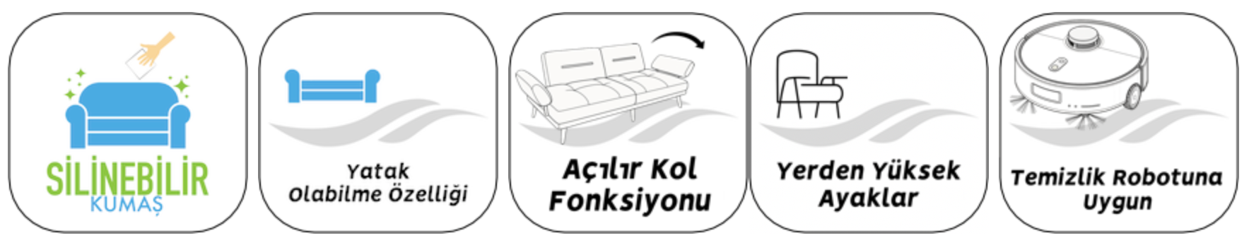 Modern tasarım, yüksek ayaklar ve silinebilen kumaş ile temizlik dert değil, keyif olacak!Koltuklarınıza uzanın, kahvenizi yudumlayın ve evinizde yeni bir hikâye başlatın!