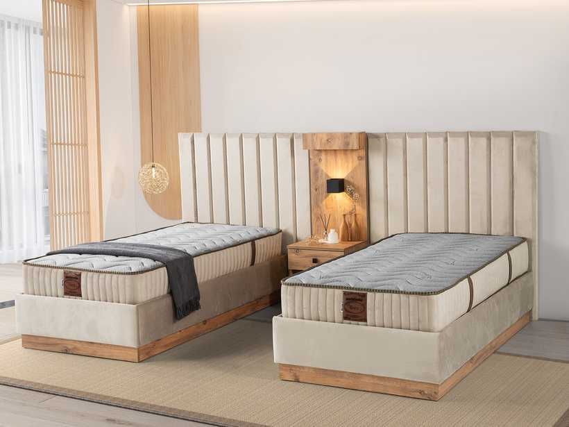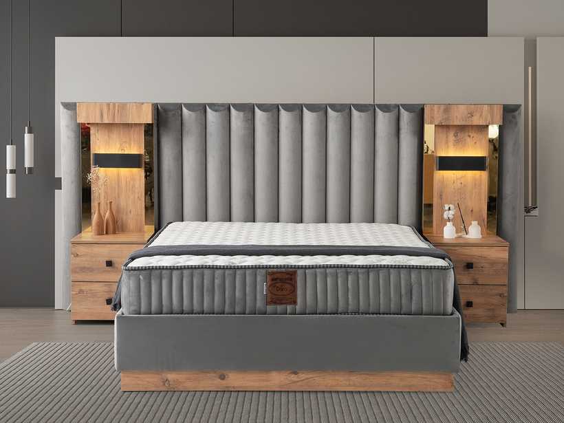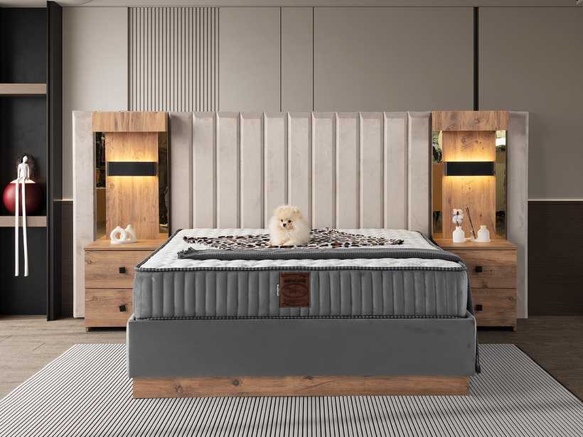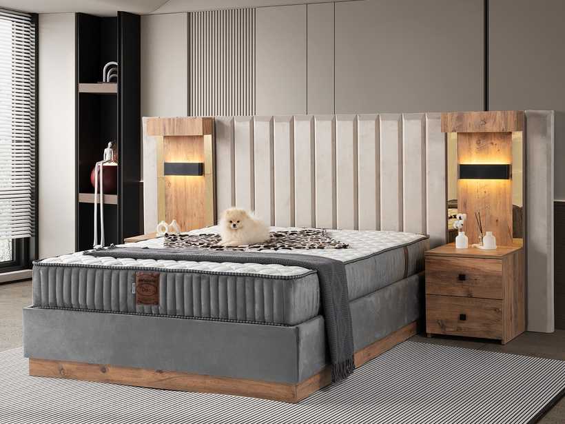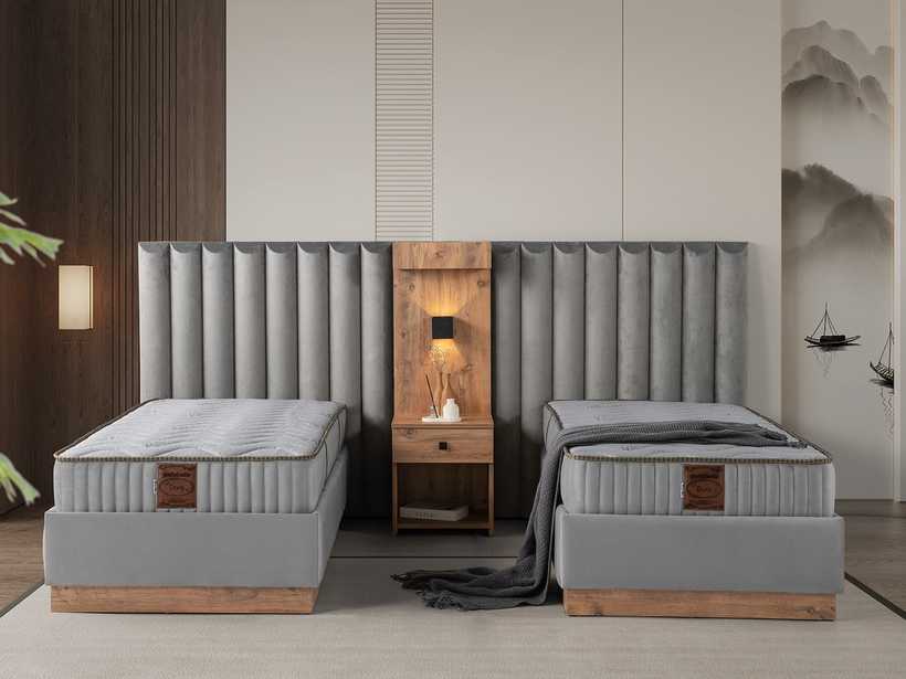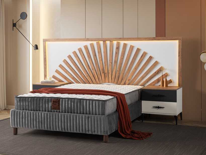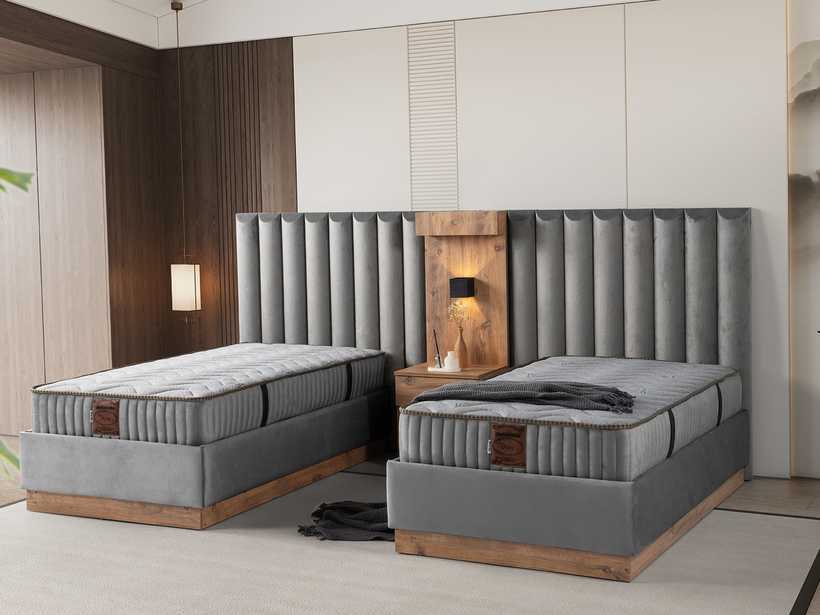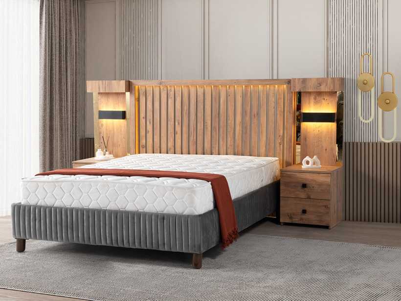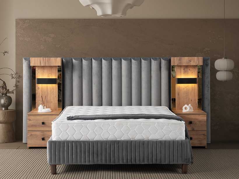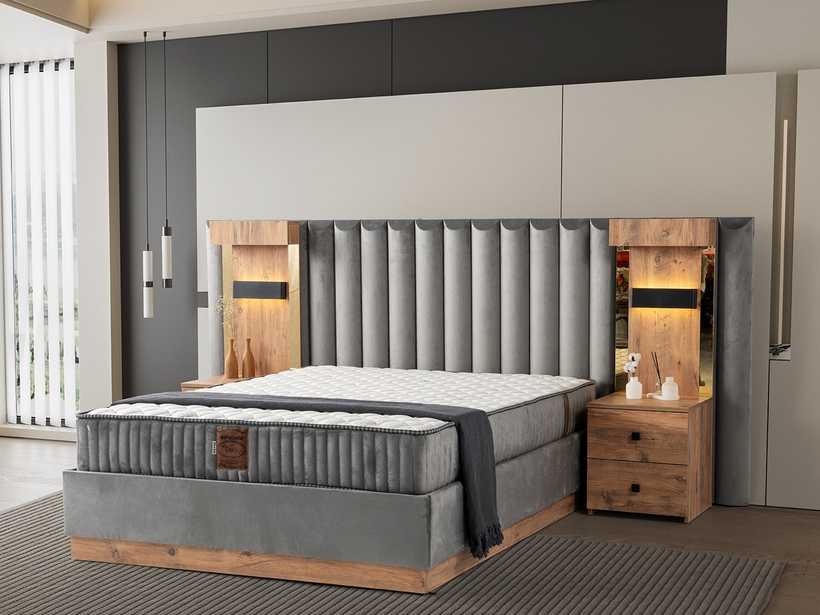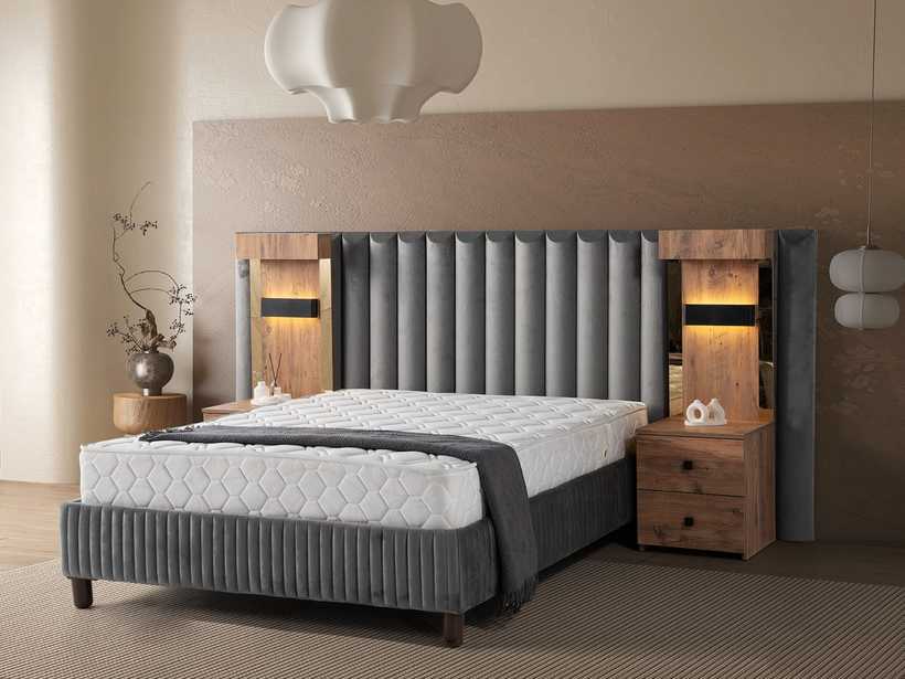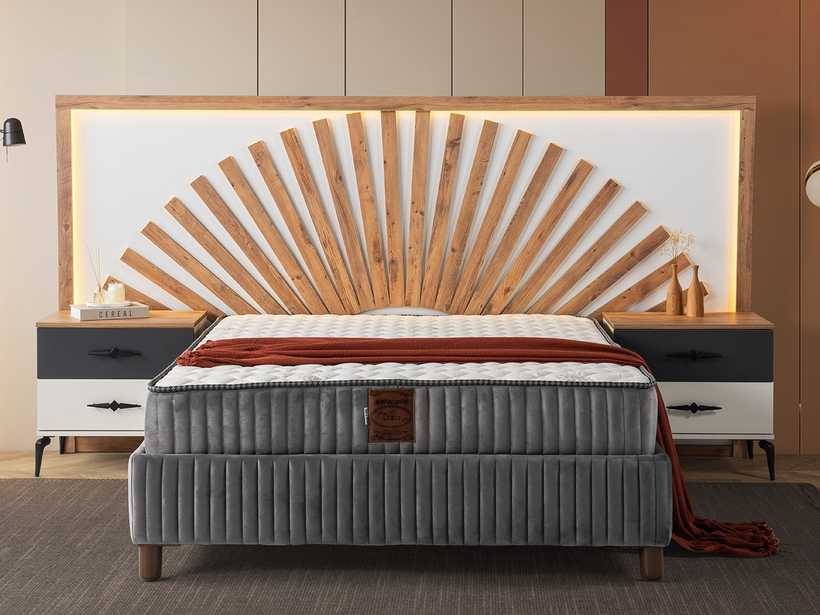 Gecenin sessizliğinde, yalnızca rahat bir yatağın sunduğu huzur kalır. Şık başlık tasarımı, odaya karakter katar; güçlü baza yapısı ise güvenli ve kesintisiz bir uyku deneyimi sunar.